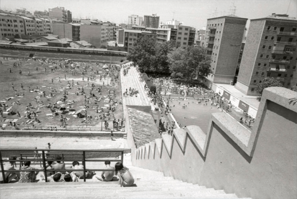 En 1970 era utilizado como lugar para tomar el sol en los días festivos, a la derecha la piscina para socios